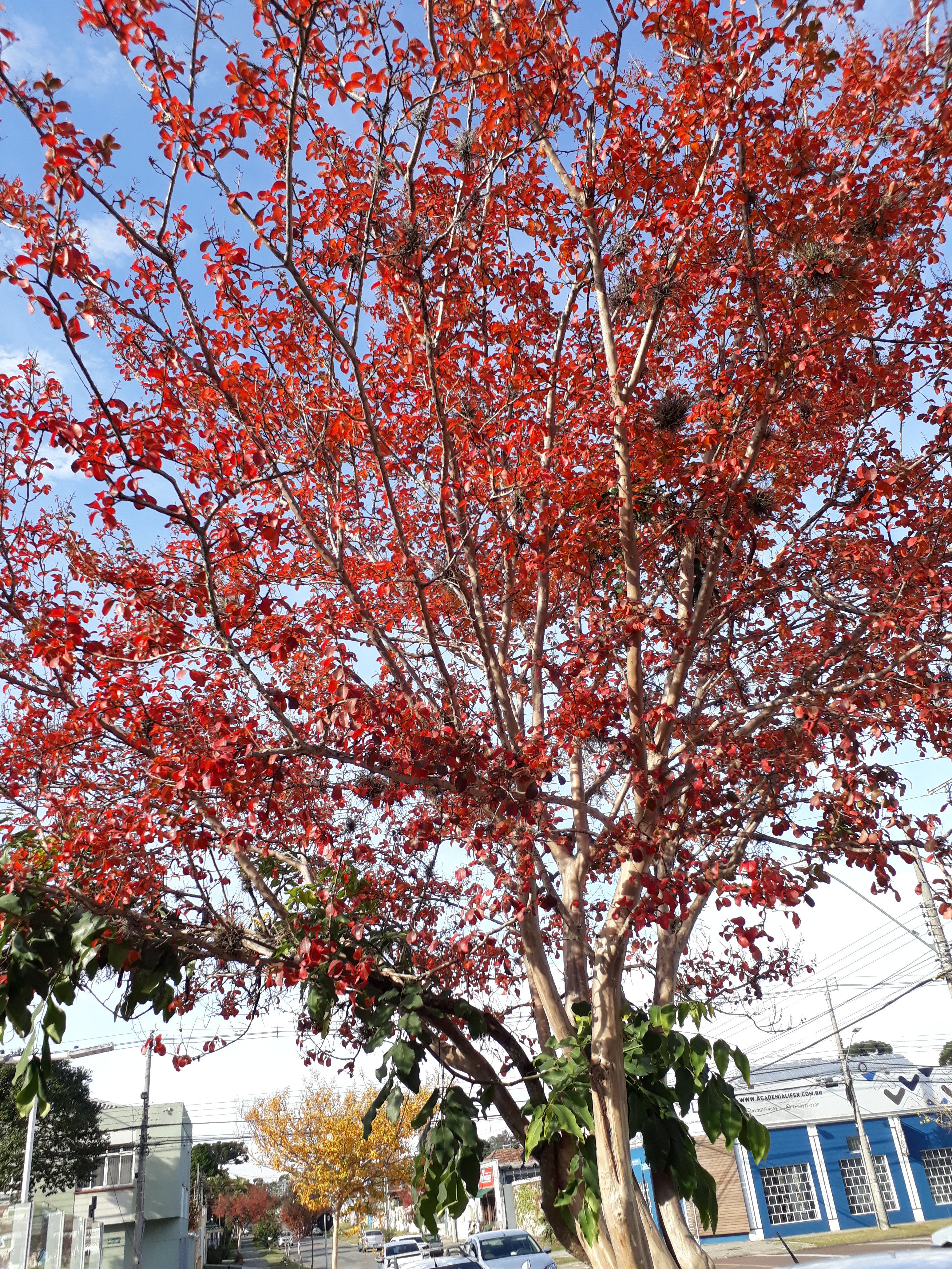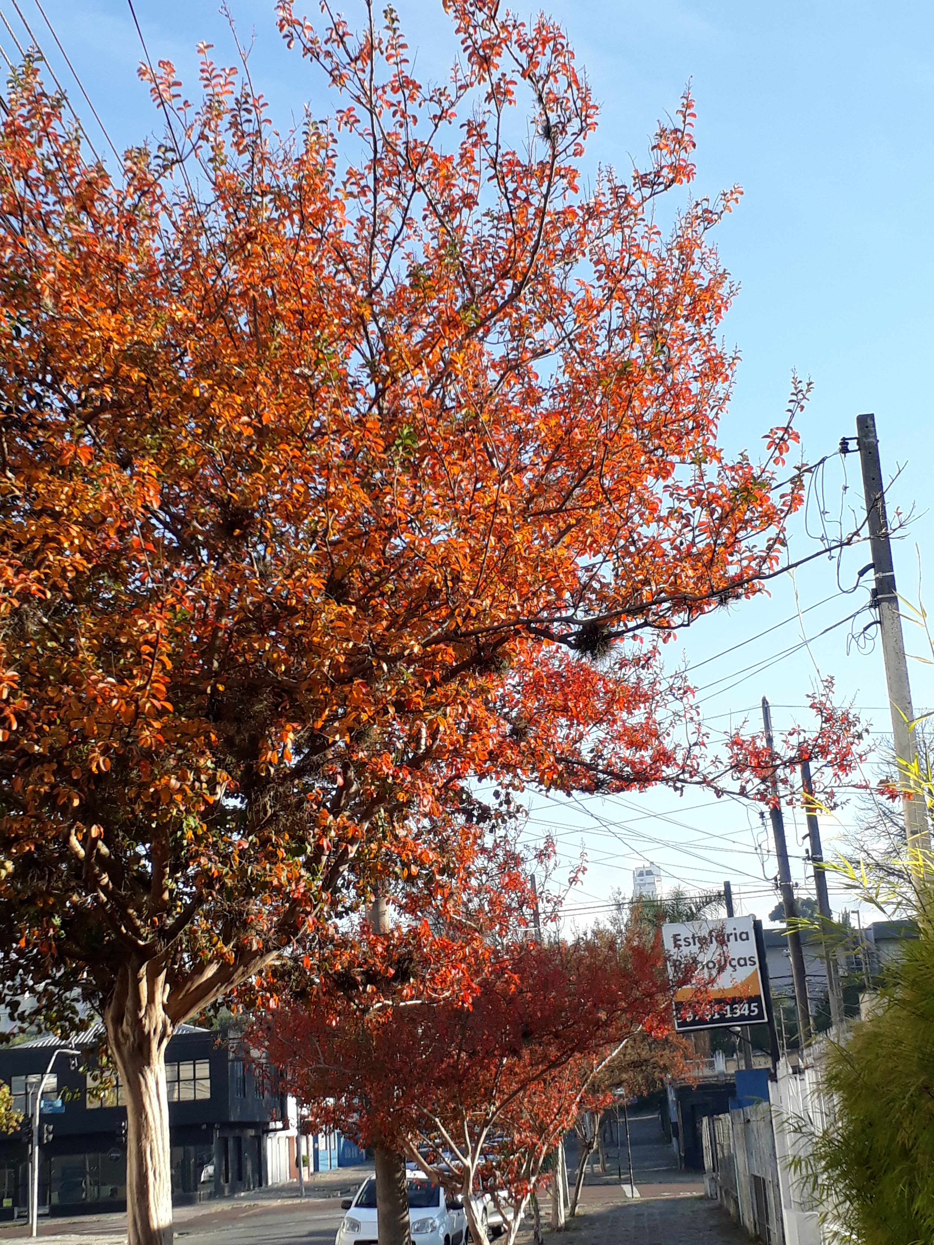 Chegou deixando um ar mais alegre neste momento de pandemia que estamos vivenciando. Fui ao médico e no caminho vi,estas arvores tão lindas como se cada folha fosse pintada uma a uma , cada folha, com traços próprios. Um arco íris diante dos meus olhos as cores vivas, em um degrade vivo, pulsante, delicado.