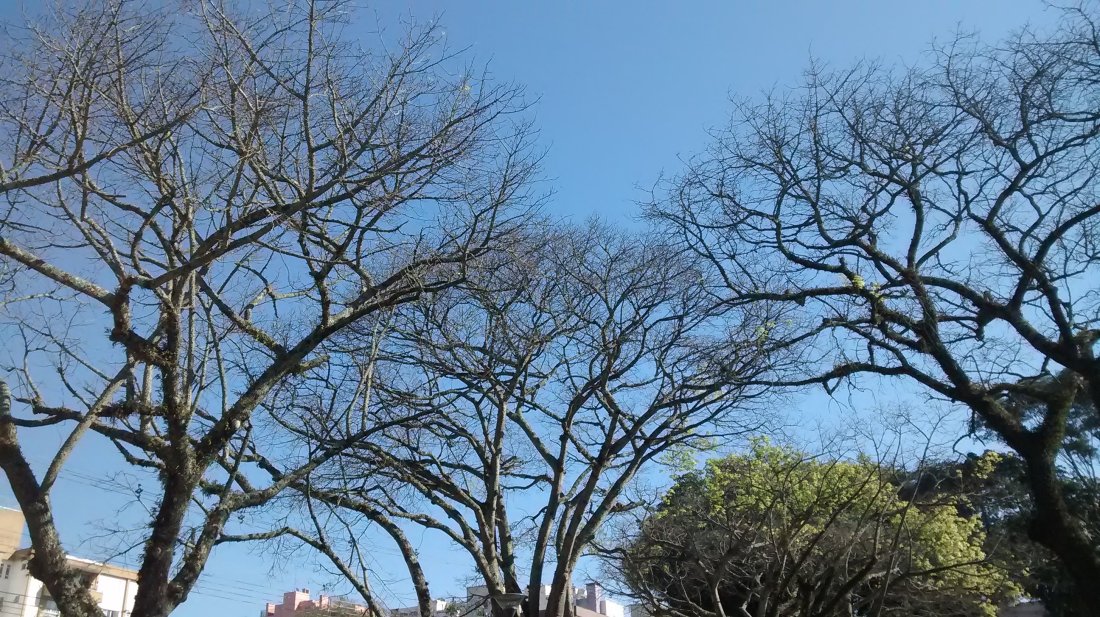 Parei para observar estas árvores peladas, sim peladas. Ao observar a beleza delas, assim nuas me ocorreu que dentro de pouco tempo ela estará totalmente vestida de verde e como um camaleão irá se enfeitar de flores e depois de frutos.. Como a natureza é bela de fato, fico pensando que durante esta transformação elas devem sentir algum tipo de desconforto ou dor, lógico que não deve ser como as nossas dores. Meus pensamentos voaram e estou aqui pensando, que nós seres humanos também sofremos uma transformação absurda. Bebês, criança, adolescentes, jovens,adultos, maduros, idosos e em toda está transformação sofremos alegrias, tristezas, decepções, euforia, raiva e dores.